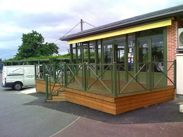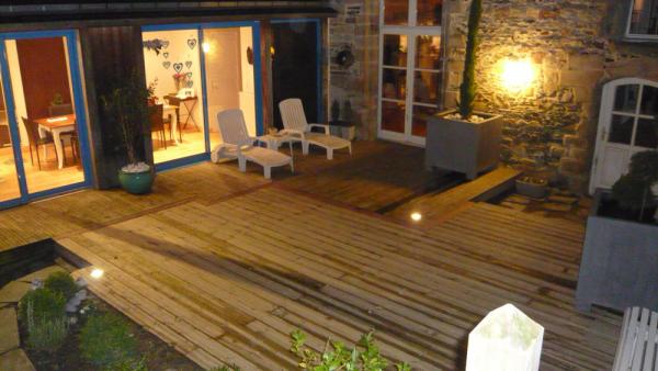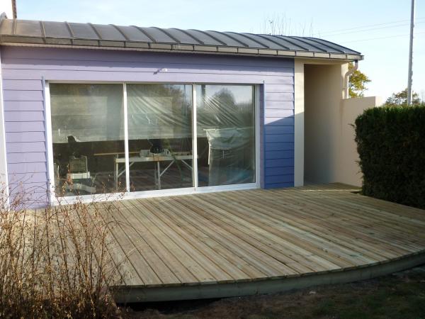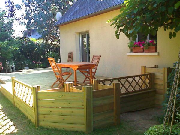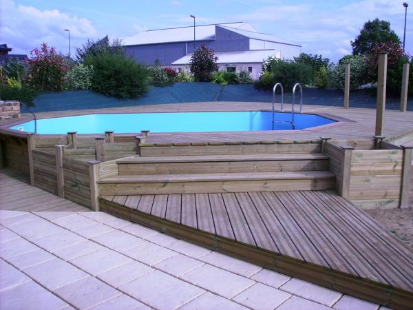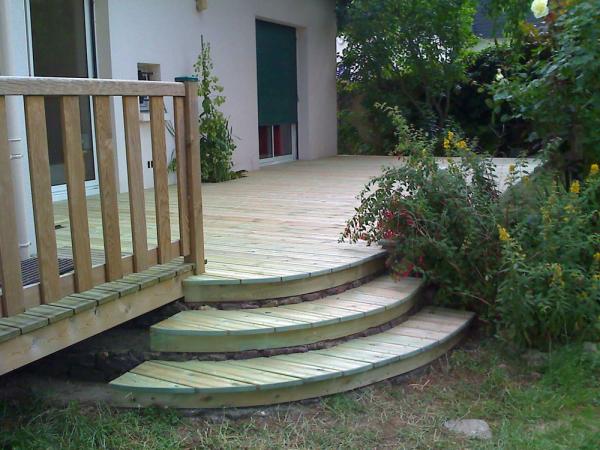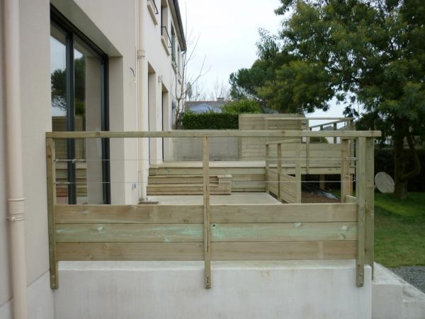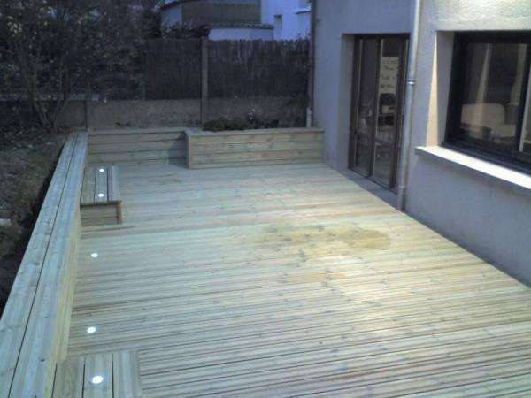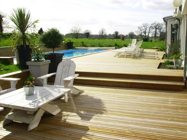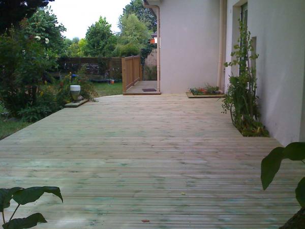 Les lames de terrasses pin que nous utilisons sont exclusivement traitées classe 4 d'une épaisseur minimun de 28 mm ; leurs largeurs sont de 145 mm avec 4 angles arrondis.