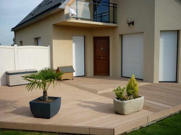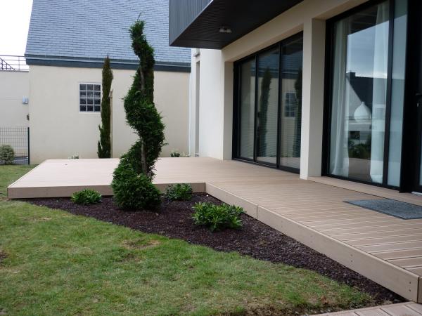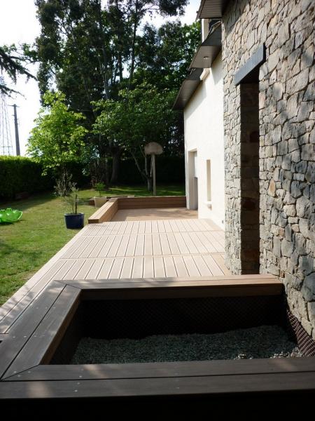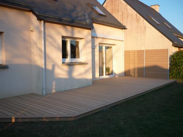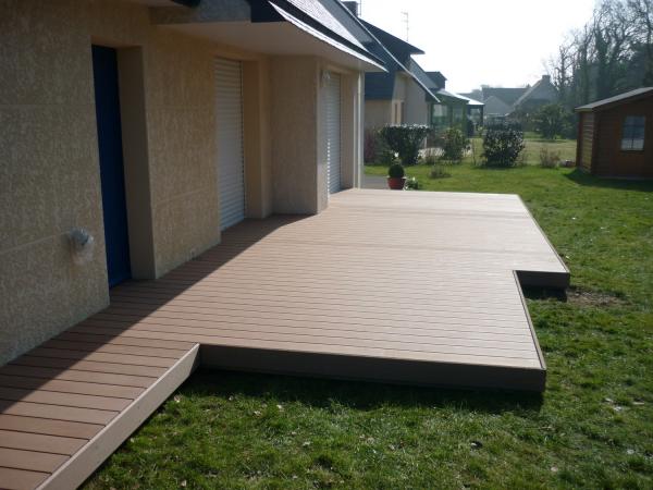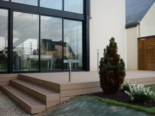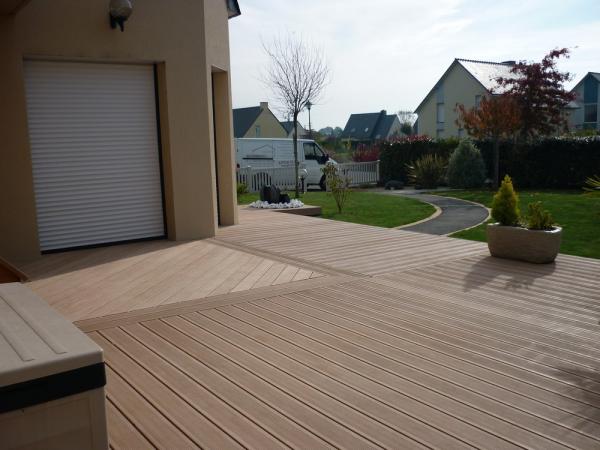 Les lames de terrasse en composite sont une bonne alternative pour les raisons suivantes : résistantes aux champignons et parasites (garantie 25 ans chez Silvadec), très bonne résistance aux u.v., entretien facile (haute pression), recyclable (contribuant ainsi au développement durable et à la protection de l'environnement), choix de couleurs variées (gris clair, gris anthracite, brun exotique ou brun colorado). Les lames que nous posons sont d'une épaisseur de 23 mm et d'une largeur de 140 mm.